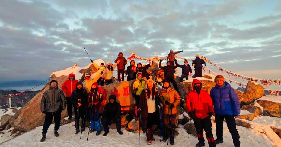3、行:30L左右背包,登山杖2根、护膝、雨披、头灯或手电、小冰爪、雪套
