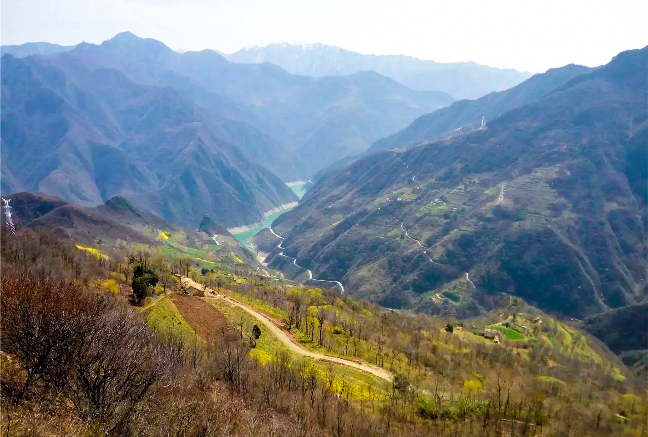 虎峪位于周至县楼观台以西14公里,地处周至县马召镇以西,号称六沟七梁一面坡,梁高,沟深,地势陡峭,峪口山势独特,穿村而过便是满眼苍翠,一坡香椿一坡杏,一片李子一片林,登上虎峪梁顶黑河水库近在咫尺,身处苍绿中眺望一池碧绿,另有一番风景。