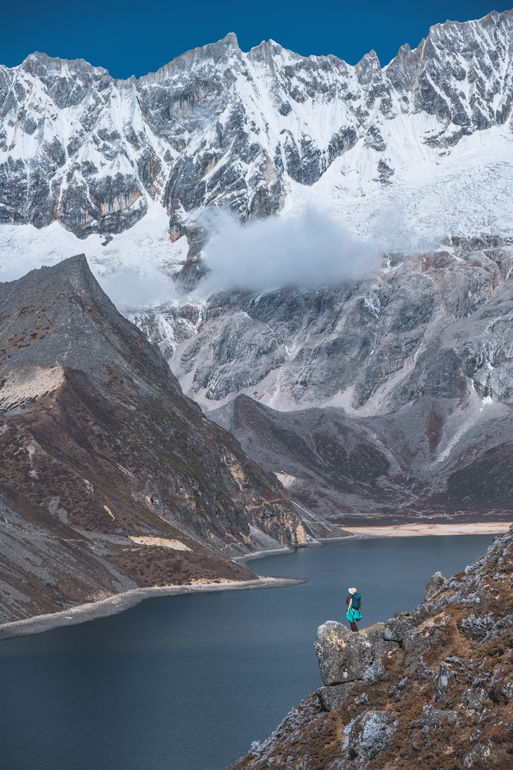 D3:洛扎—措玉村—徒步白玛林措—色乡全天 早8点酒店早餐后出发,乘车经措玉村(海拔4160m)1.5小时即可到达白玛林措(海拔4500m),背上今天的路餐和备用衣物,在领队的陪同下,开始我们的库拉岗日雪山徒步之旅。今天的徒步比较简单,沿着白马林措右侧一直前行到湖的尽头白马林寺,探访莲花生大师的修行地,眺望卡热疆雪山,之后原路返回。白马林措湖颜色因深浅不同与其周边的景色融汇后呈现出蓝、绿、白三种颜色 。据说信徒们可以从这湖底窥见自己的今生来世。天气好的情况下,我们将提供天幕帐篷、户外桌椅及茶具,可以坐在湖边一边喝茶一边欣赏雪山,傍晚返回措玉村或色乡入住。