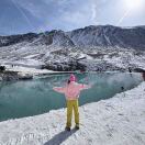 碧绿色的水潭镶嵌于天然峡谷之中,峭壁乱石与如镜水面相互映衬,蓝绿色的潭水与嶙峋岩壁相映成趣。河谷内散落着被河水冲刷得形态各异的石头,堆叠起来的石堆极具氛围感,搭配蓝绿色水面,像极了迷你版水上雅丹。