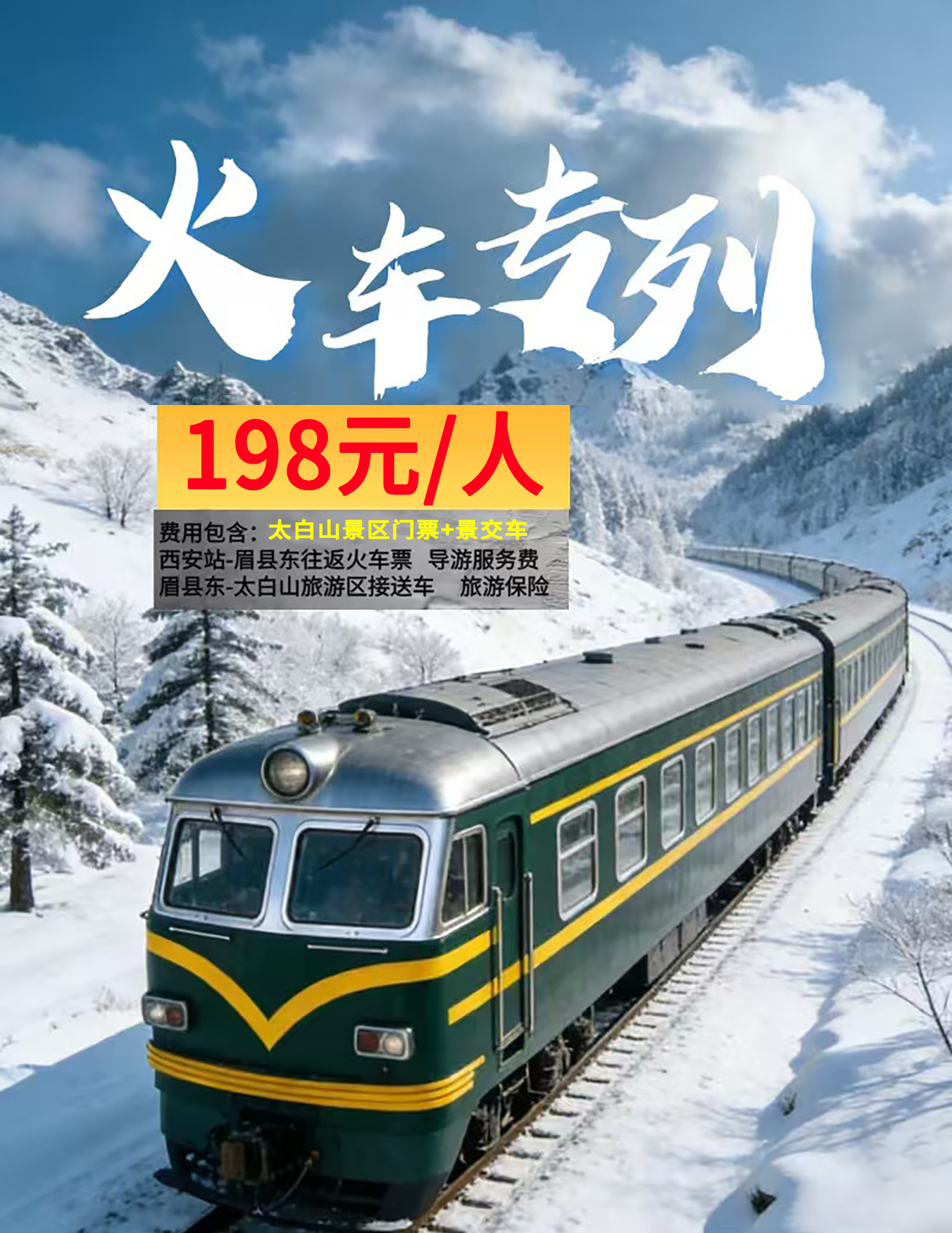 太白山景区和冰岩户外联合发布 “坐着火车逛太白” 太白山冰雪旅游季,太白山专列赏雪一日游!