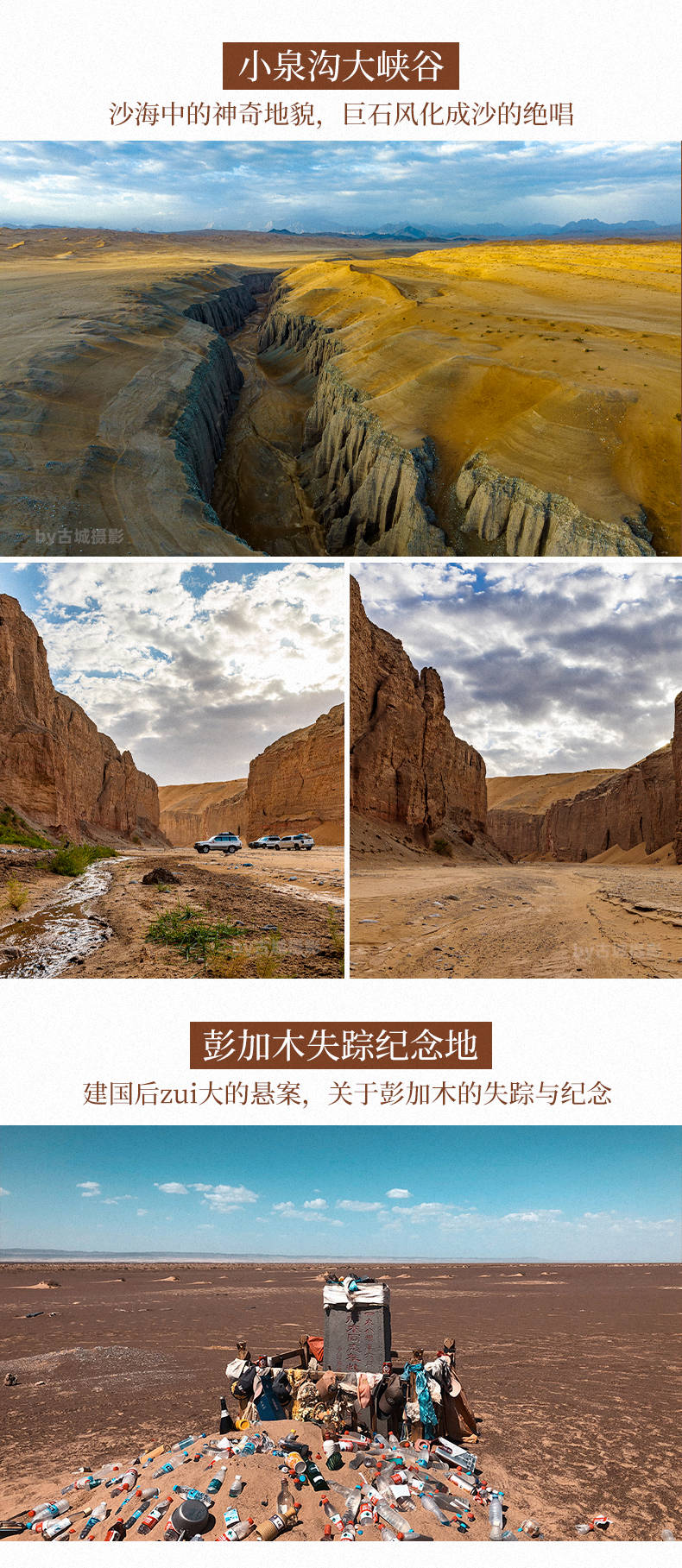 游玩亮点:祭奠献身于大漠的科研工作者、一号科考纪念碑、月球试验场阿奇克谷地、天坑寻宝