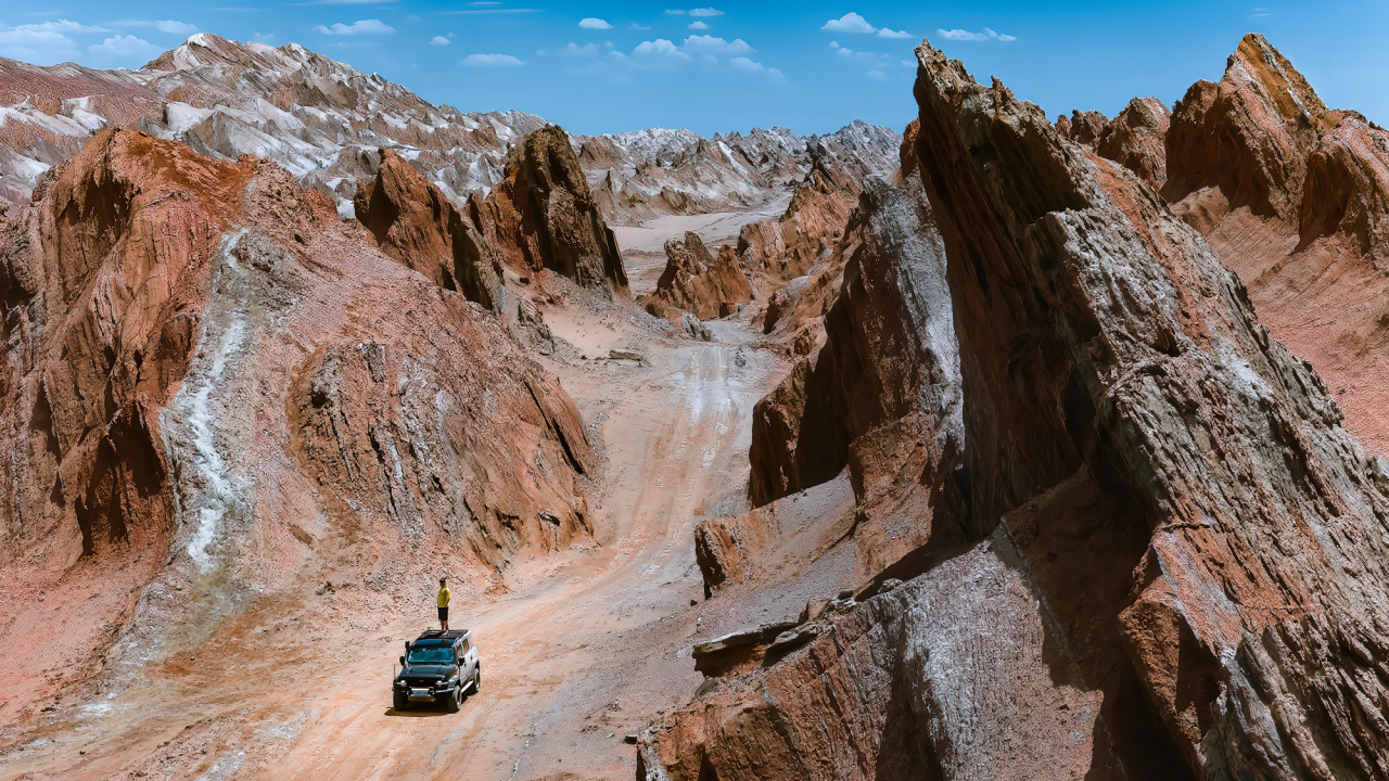 旅程的最后一天,我们迎来了一处令人惊艳的山谷【五彩谷】。这片被五色土赋予神秘色彩的山谷,像是一副气势磅礴的油画,更像被打开了异世界的大门。浓烈的阳光让颜色层次分明,肉眼可见的有鲜艳的橙色,细腻的银白,还有远处的灰色等多元色彩的层叠。独特的地理和气候环境造就了这里的鬼斧神工,绝对能带给你前所未有的视觉冲击。