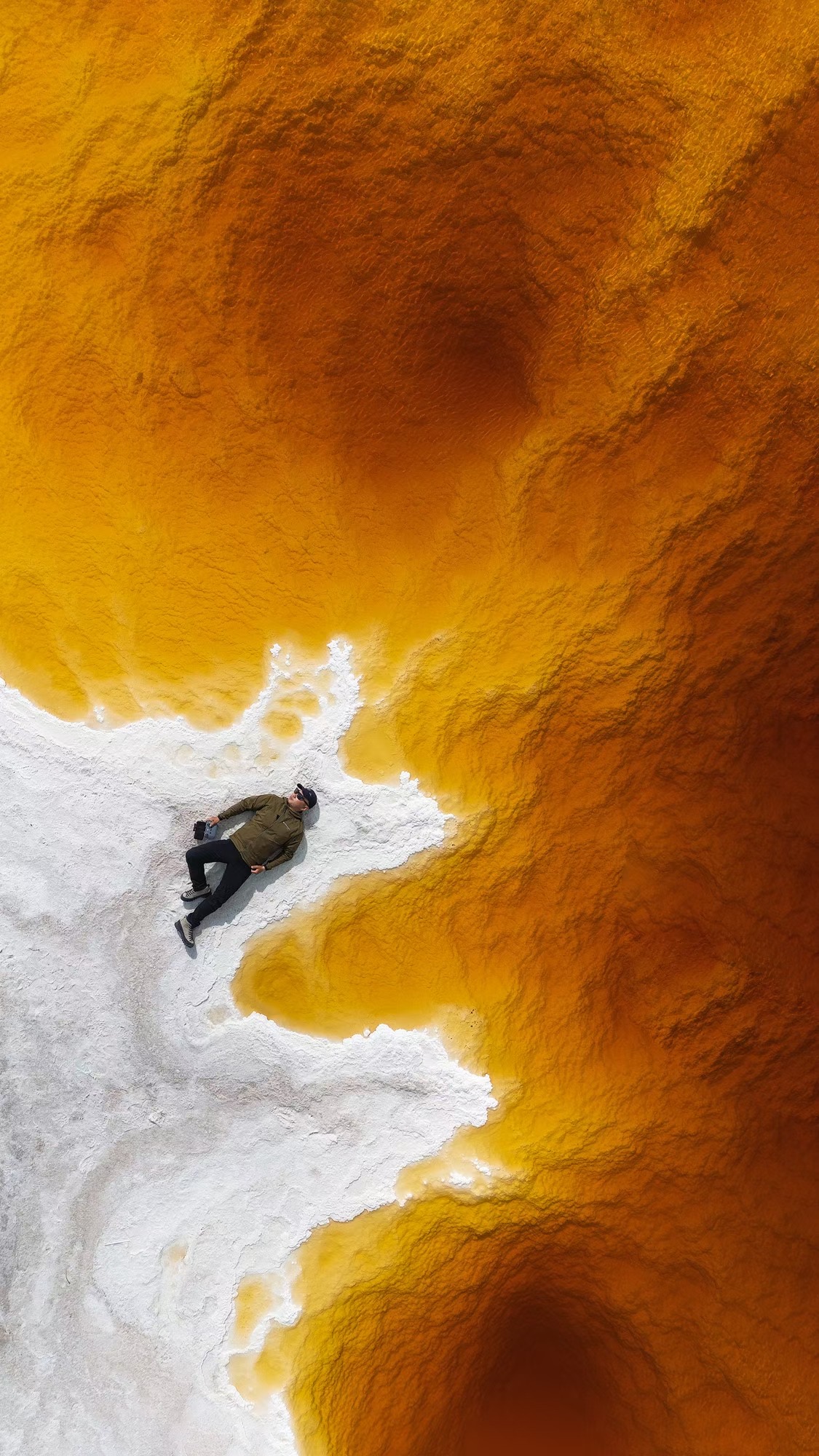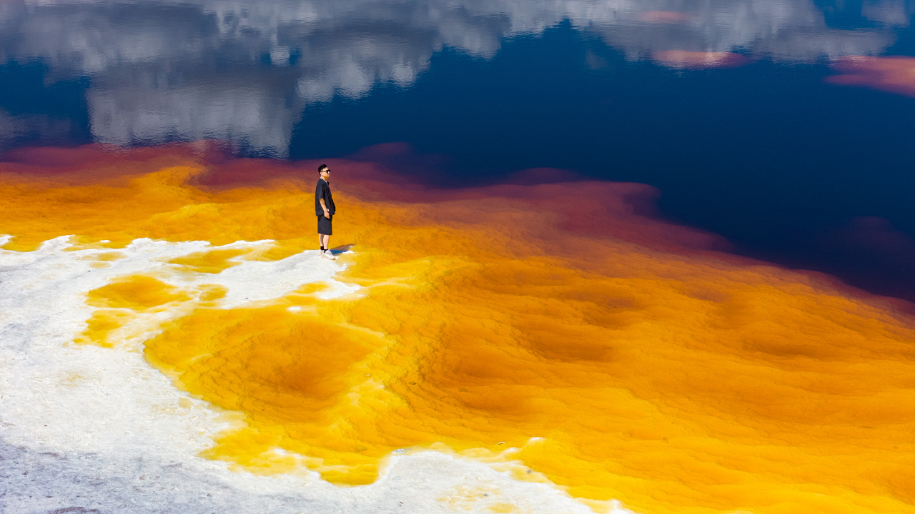 适时离开,前往大柴旦,作为大柴旦翡翠湖的腹地,也是未经完全开发的新景观,【蜜蜡湖】会带给你截然不同的全新感受。湖如其名,它如焦糖般的颜色无比梦幻,没有风的时候,湖水凝固如同琥珀,微风吹起,湖水泛起涟漪,独特的蜜蜡黄层层铺展开来,美的令人叹为观止。