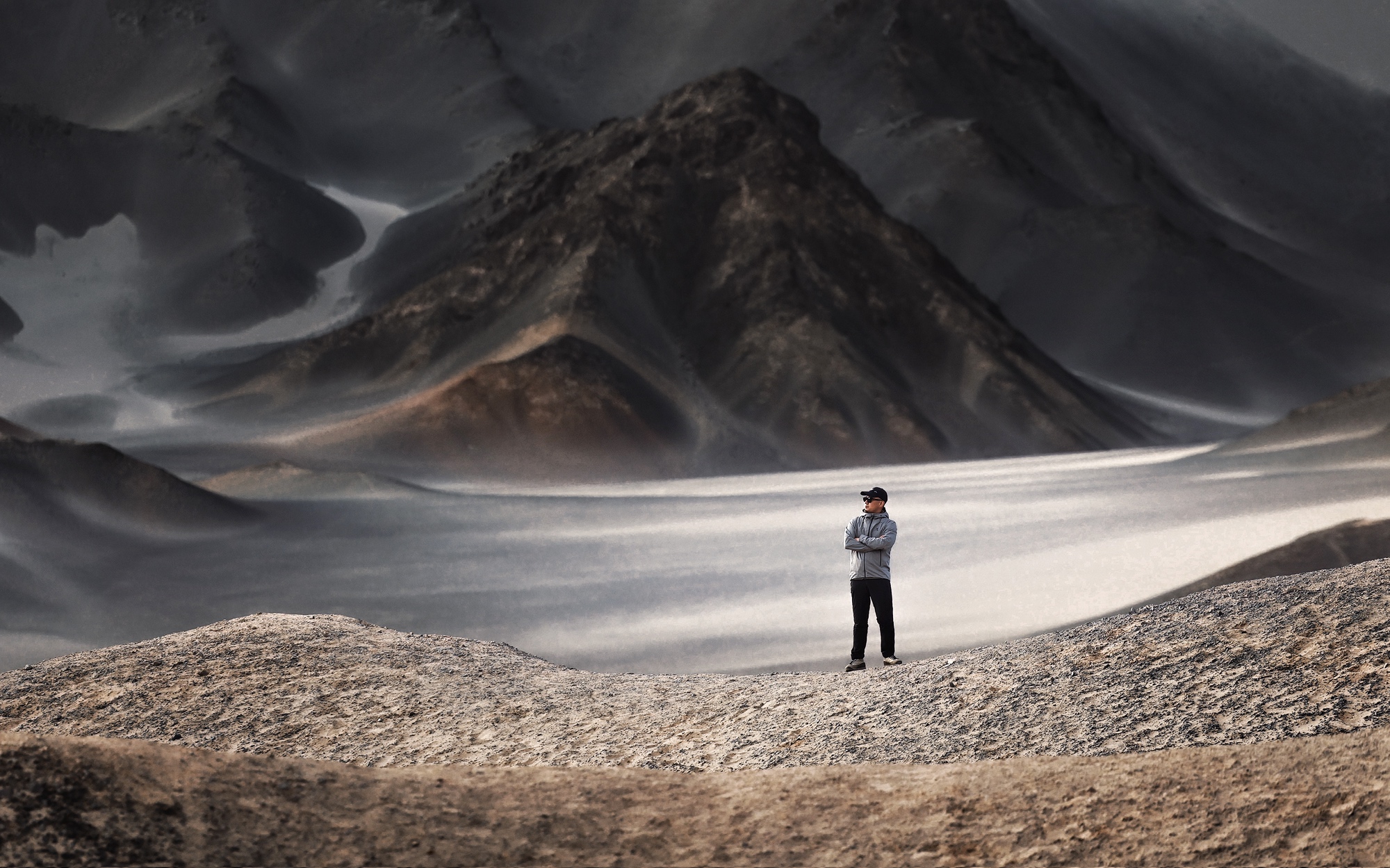 今天第一个目的地,是地处西北戈壁腹地的【黑独山】,作为地球上最像月球表面的小众景点,这里纯粹的黑与白,有种遗世独立的诗意。呜咽的风中偶尔夹杂戈壁的碎石,眼前的山体冷峻而神秘,就像一幅留白十足的水墨丹青。在这里可以轻松拍出朦胧感和致郁系大片,高级感拉满!