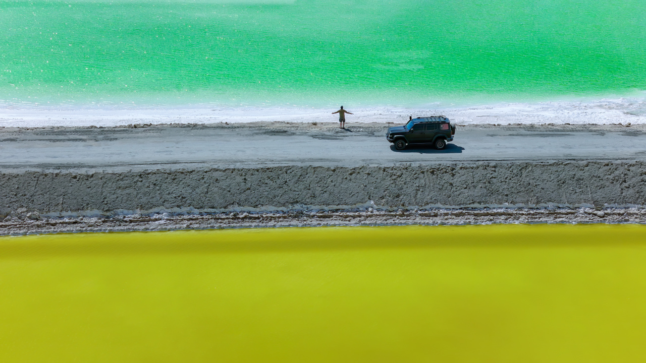 早饭后,我们驱车前往今天的目的地,一个真正的小众景点【琉璃之境.如意湖】,99%的人都没有来过的地方。这里盐湖色彩非常丰富,碧绿色的湖水在风中波光粼粼,而另一边金黄色的湖水深邃的就像一块琥珀,在阳光照耀下闪烁着琉璃般的色泽。穿梭于盐湖之间的小路,沿途湖光山色美不胜收,简直是摄影爱好者的天堂。