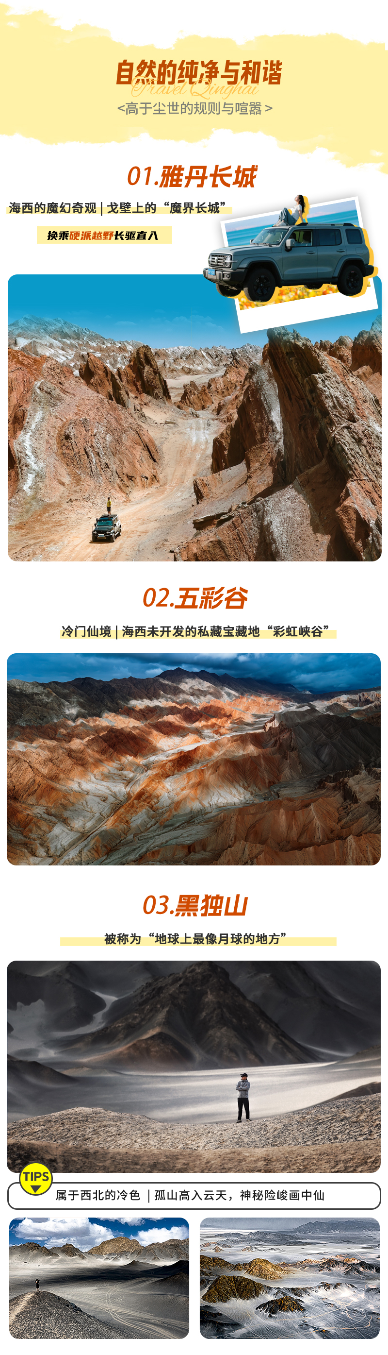 注: 1、进入雅丹长城将换乘硬派越野车; 2、雅丹长城地处北俄博梁雅丹核心区,属于未开发景点,游览方式及进入过程存在一些不确定性因素,望理解!