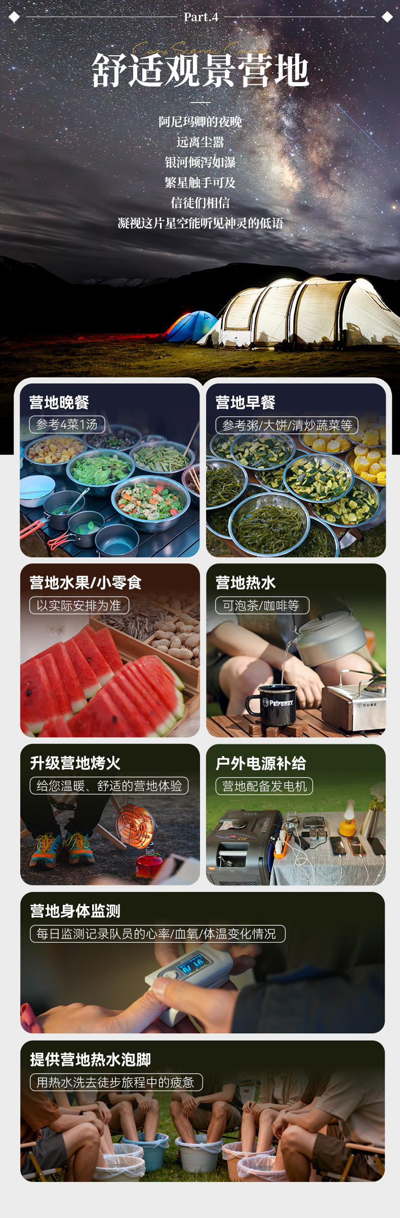 用餐:含早餐(营地餐)、晚餐(营地餐)