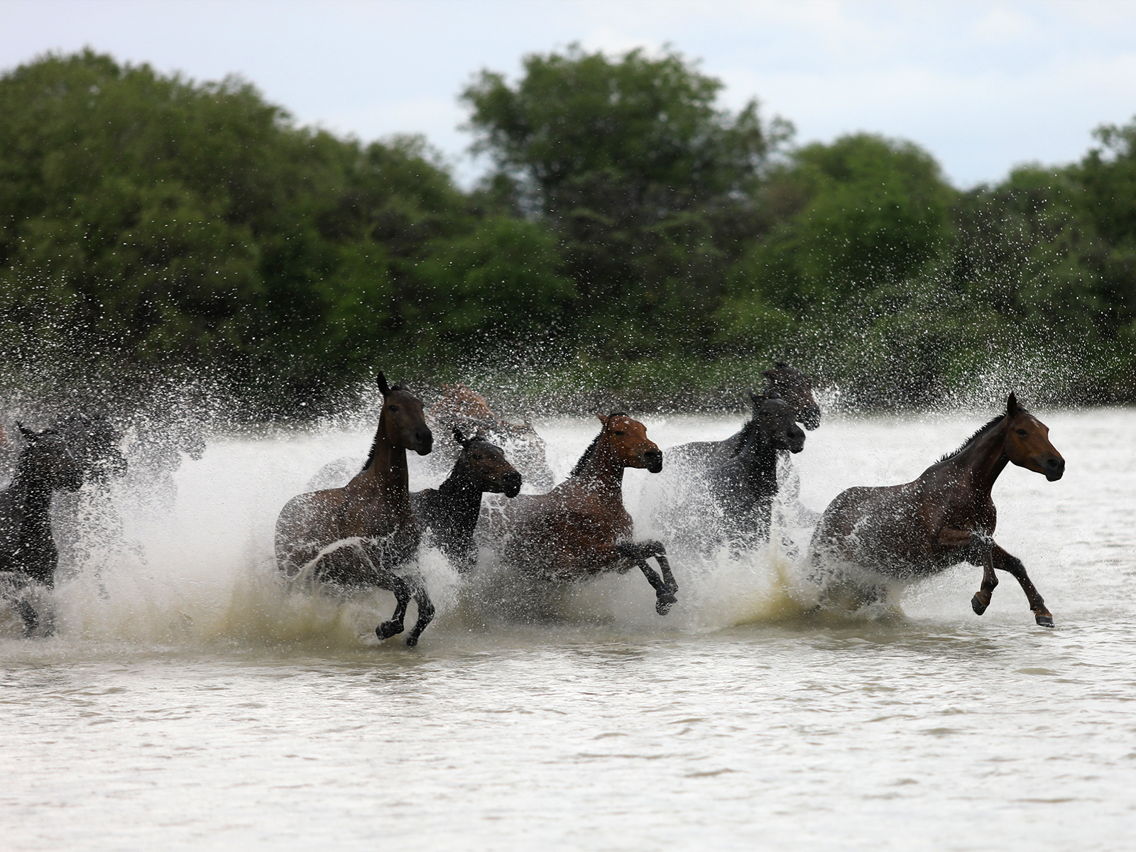17:00昭苏湿地公园的【天马浴河】是一场富有震撼力的视觉盛宴。赶马人身骑头马,带领着一群威武雄壮的伊犁马,勇敢地冲入河水中。马儿们迈蹄狂奔,激起一片片洁白的水花,仿佛置身于仙境之中。