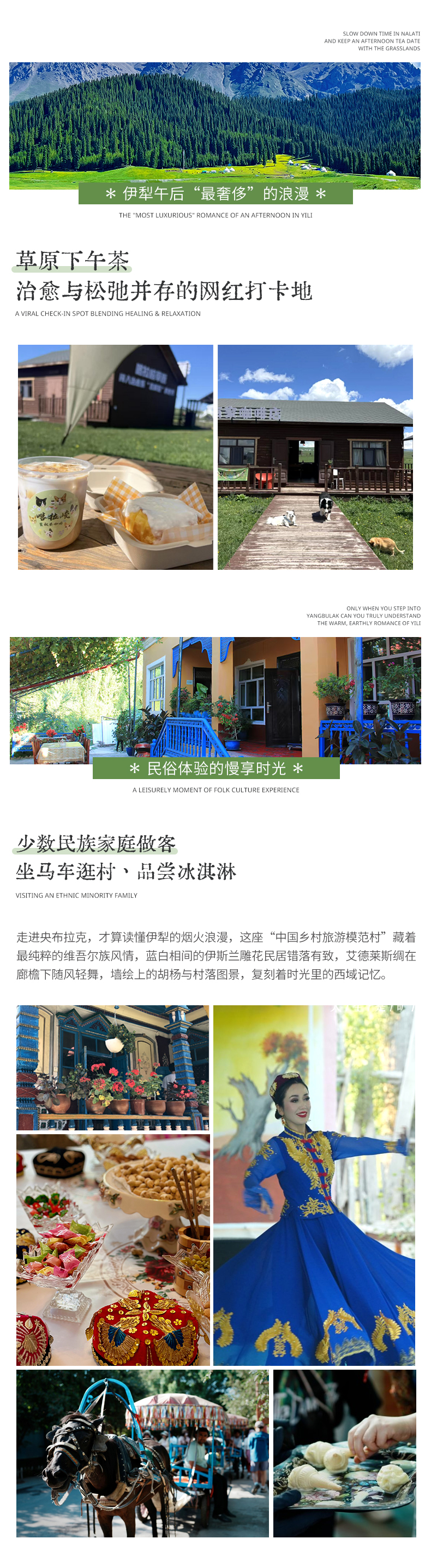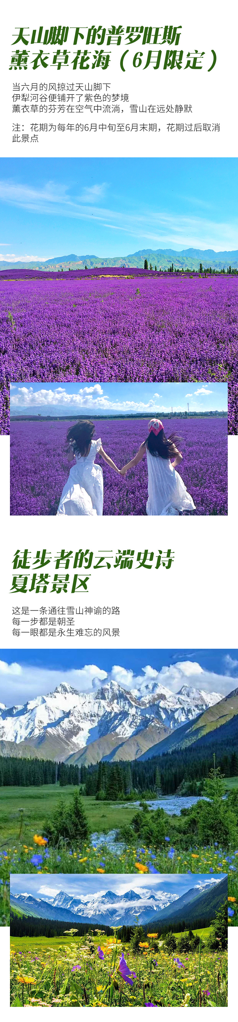 注:伊昭公路开通时间为每年6月中旬-9月中旬,如遇交通管制无法游览,则绕行特克斯前往昭苏。