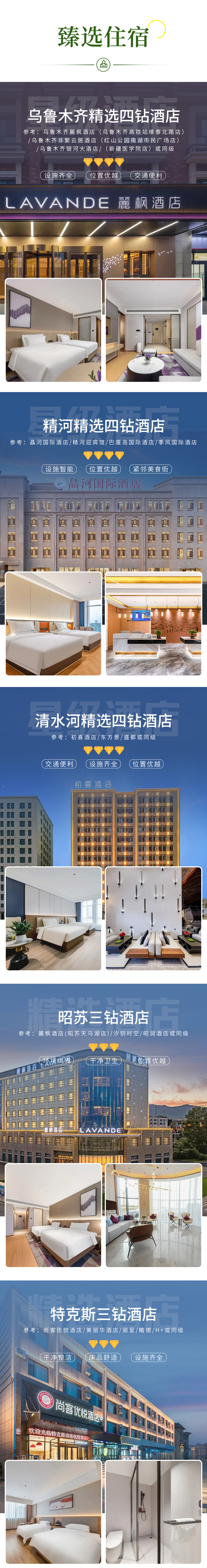 备注:钻级标准参考携程钻级标准,未挂星。新疆经济较为落后,酒店较南方酒店略差,敬请谅解;