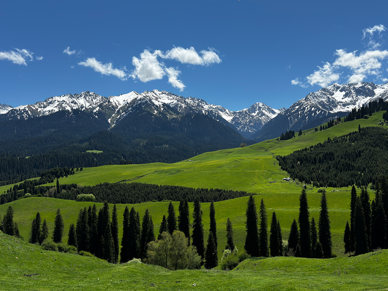 堰塞湖形成的自然风景区,主要景观有林海松涛、石门垂流、高山草原风光。今天全天深度游玩恰西,我们安排了【骑马体验】、【团队的旱地拔葱】视频拍摄、刷爆朋友圈!当云杉的绿浸染山谷,雪山的白点亮天际,溪流的银穿梭于草原,恰西便成了天神失手打翻的调色盘。这里是伊犁河谷的隐秘画室,每一帧都是自然的笔触,每一步都是诗行的韵脚。