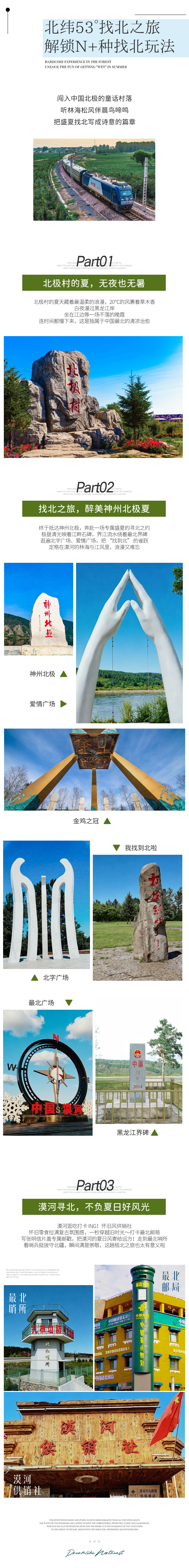 北极村-漠河供销社-最北邮局-最北哨所-鄂温克驯鹿园-打卡漠河舞厅-乘坐漠河-哈尔滨火车硬卧(80KM,车程约1小时)