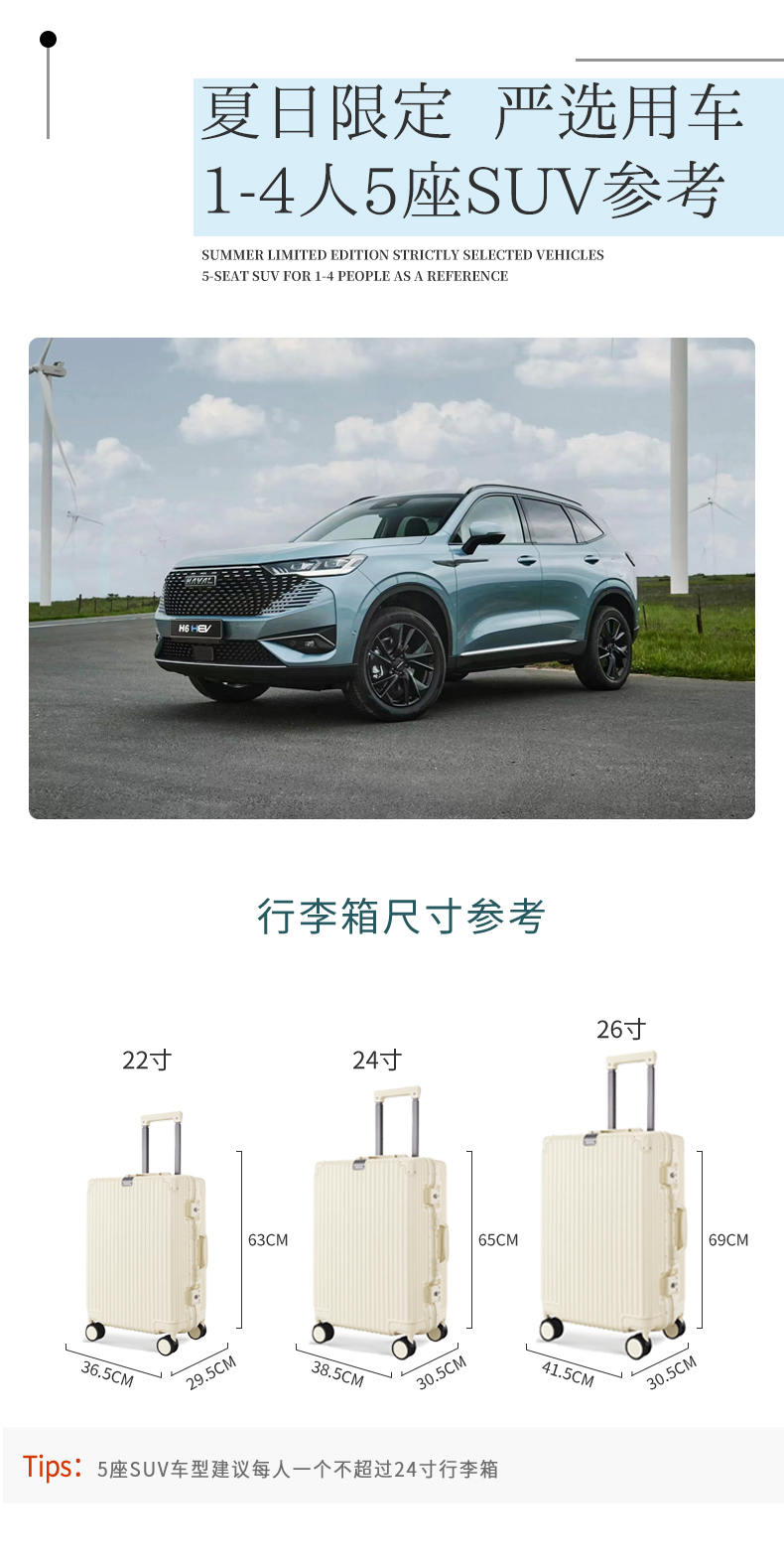 每人限携带24寸行李箱1个(因后备箱空间有限)