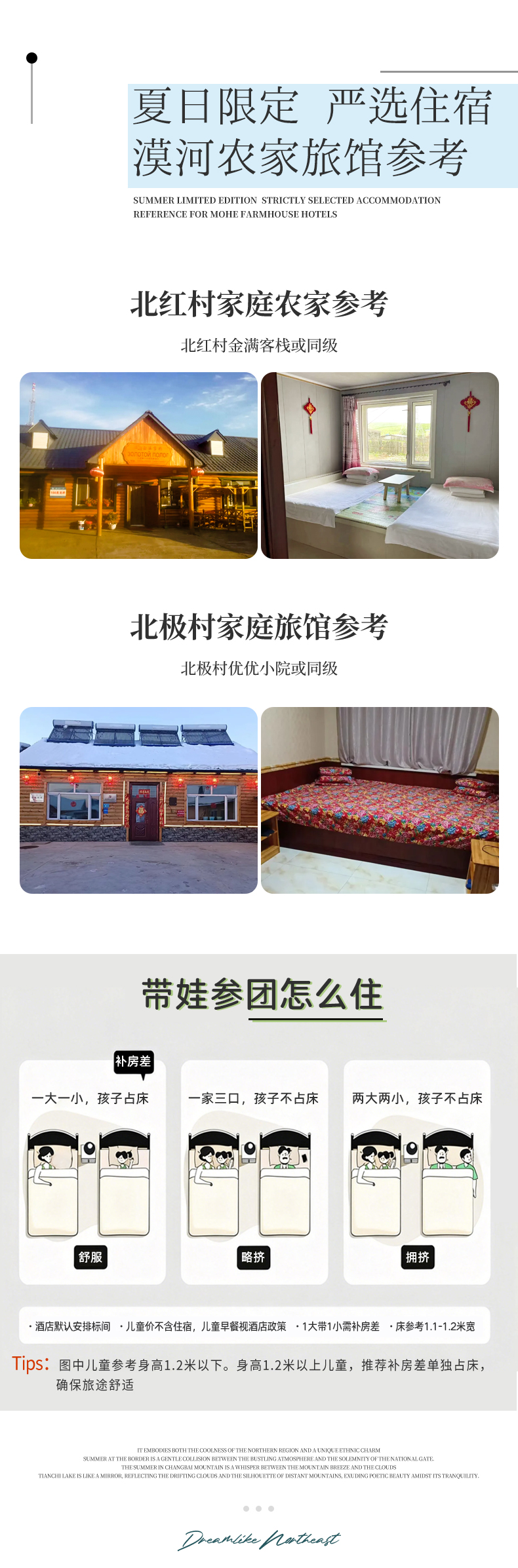 2、北极村为民风淳朴当地住宿,条件有限,请自备洗漱用品和吹风机,感谢您的理解。