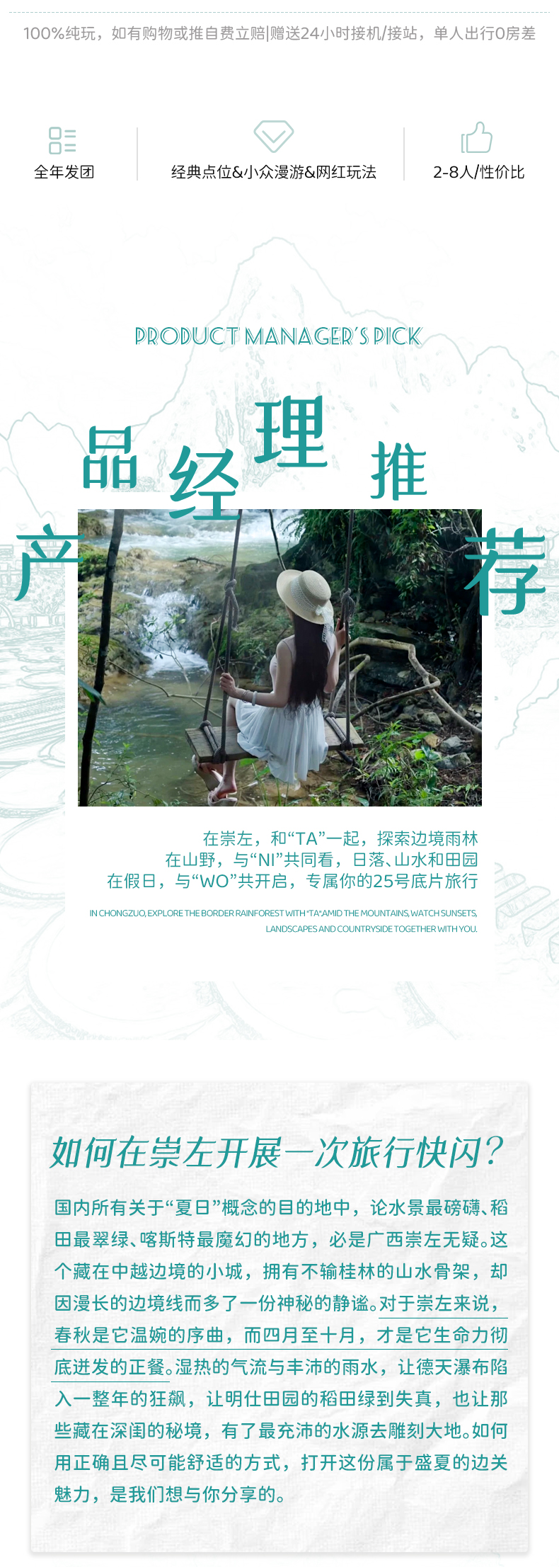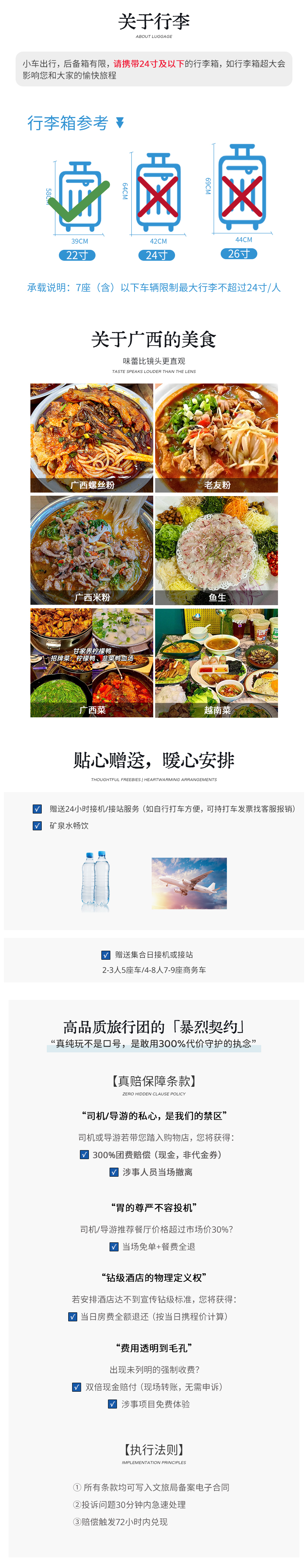 注: 1、如果定南宁吴圩机场返程的朋友,建议定当天18:00之后的航班; 2、如果当天不走的小伙伴,也可以联系客服代订酒店; 3、伏那秘境如遇如遇雨季、台风、洪峰、大风、高温等极端天气景区封闭无法游览时,改为直接返回南宁机场解散,无备用方案;