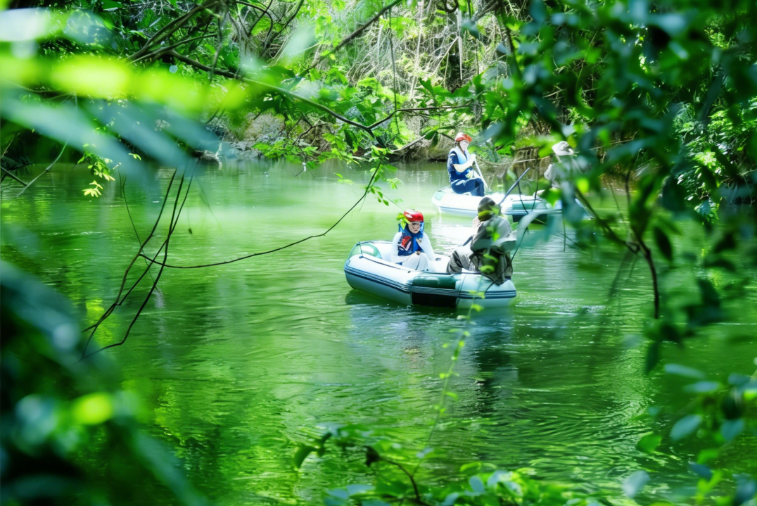 13:30 回到明仕田园开始【竹筏游江】,将你的午后时光交给明仕河的柔波。登上一叶竹筏,船工的长篙一点,你便滑入了这幅喀斯特地貌的山水长卷。河水碧绿,倒映着两岸无数秀美的峰林。传说中“万乳崖”的奇观和“神猴拜观音”的山形故事在船工的指点下变得生动。如果运气好,或许还能听到竹林深处传来壮族姑娘清亮的迎客山歌,为这场“画中游”平添一份在地的趣味,是沉浸式感受明仕田园灵魂的最佳方式。