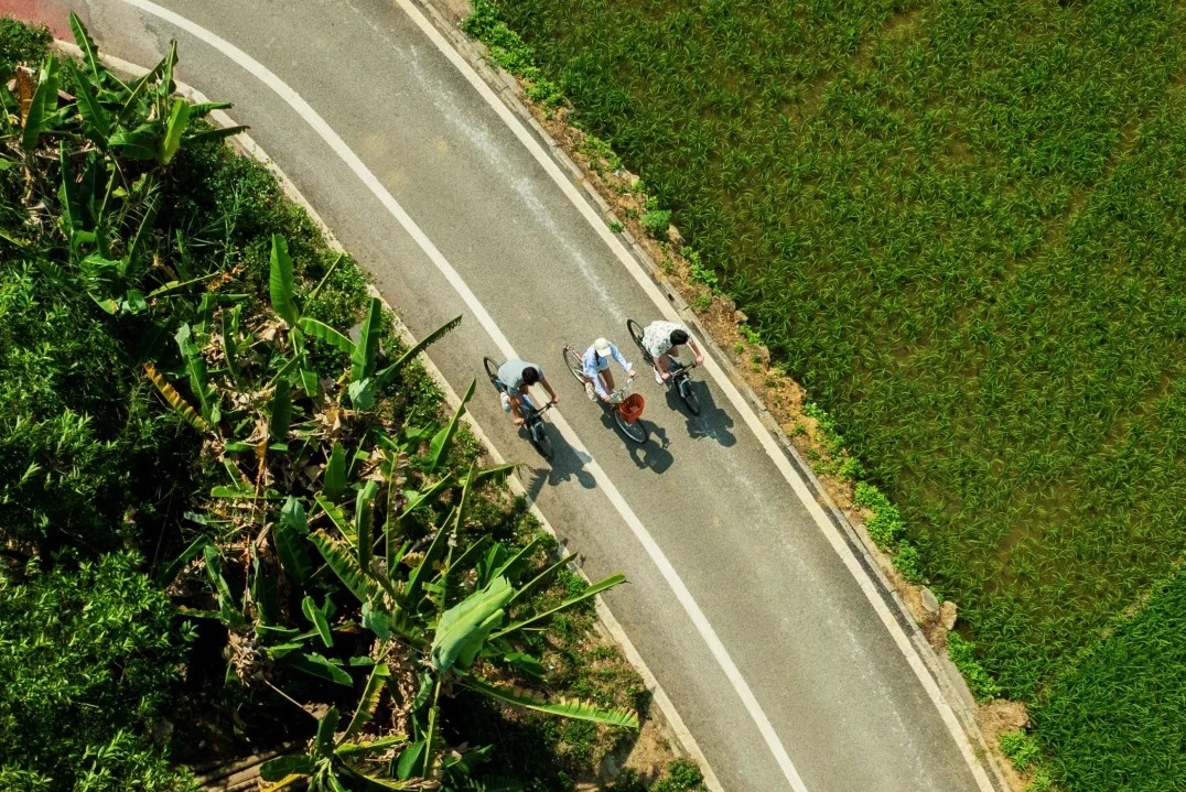 16:00 是时候换一种节奏,开启【绿道骑行】,成为一名田野间的追风者了。沿着平坦的田间小道,穿梭在稻浪、甘蔗林与错落的村舍之间。骑行没有固定终点,最美的风景常在不期而遇的转角:可能是田边吃草的水牛,也可能是掠过天空的白鹭。夕阳西下时,柔和的金光洒满田园,正是骑行最惬意的时刻。