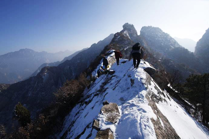 由西面看,它像一条巨龙,似在白云中腾空而起,踩在龙脊上,给人驾龙腾跃之感。嘉午台,向来有“小华山”之称,不仅因为龙脊上风景美丽,更多因为它的险,陡,绝,很受热爱登高者的喜欢。