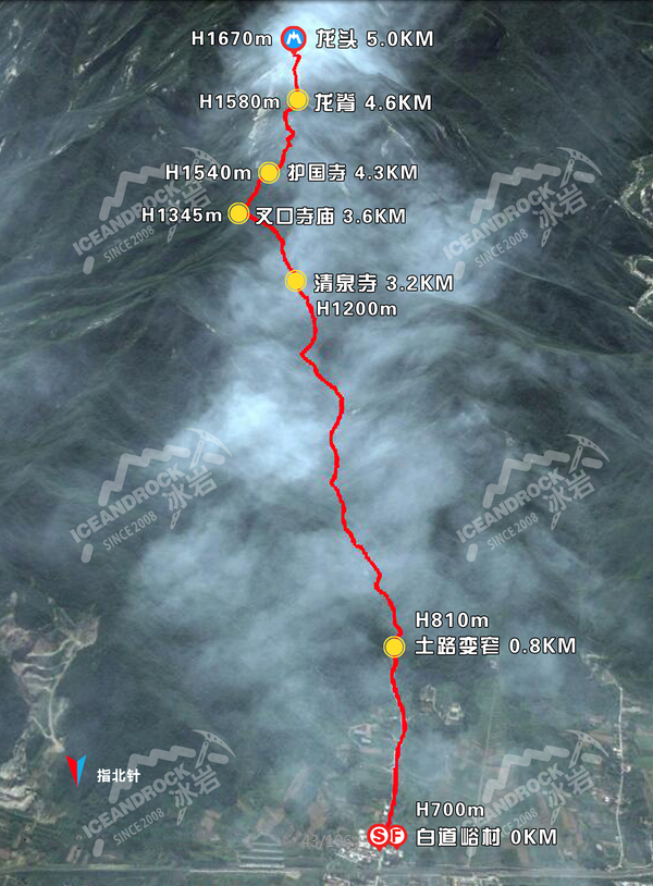3、行:25L左右小背包,登山杖2根、护膝、雨披、头灯或手电必带