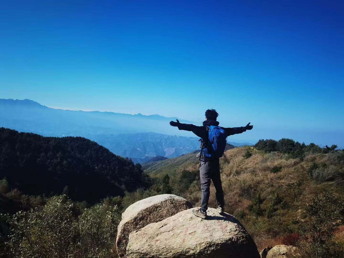 虎头山并不高,但到达之前需翻越的一座酷似鹰咀的山峰站其之上,俯瞰秦岭蓝田段风光 。