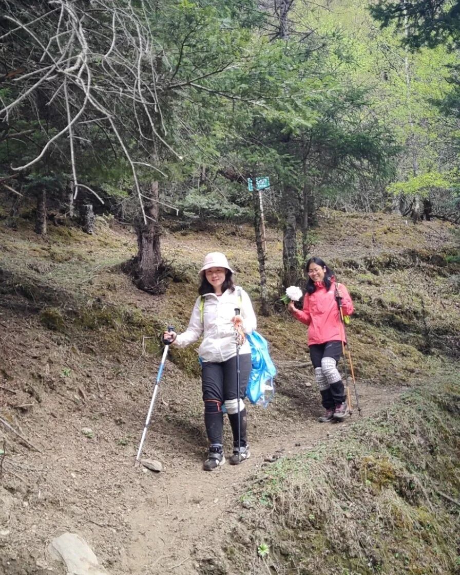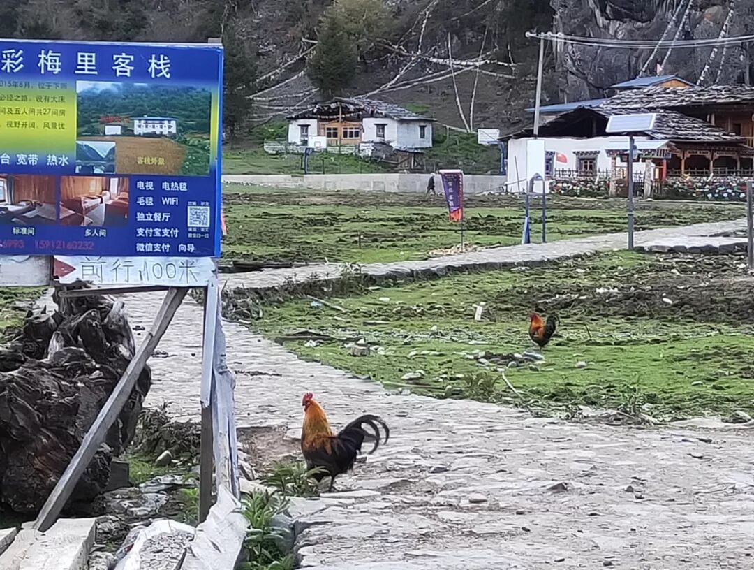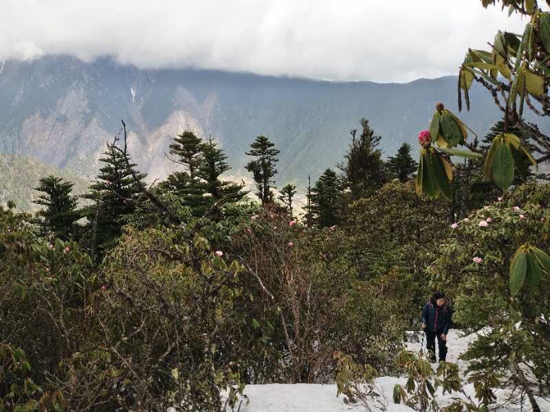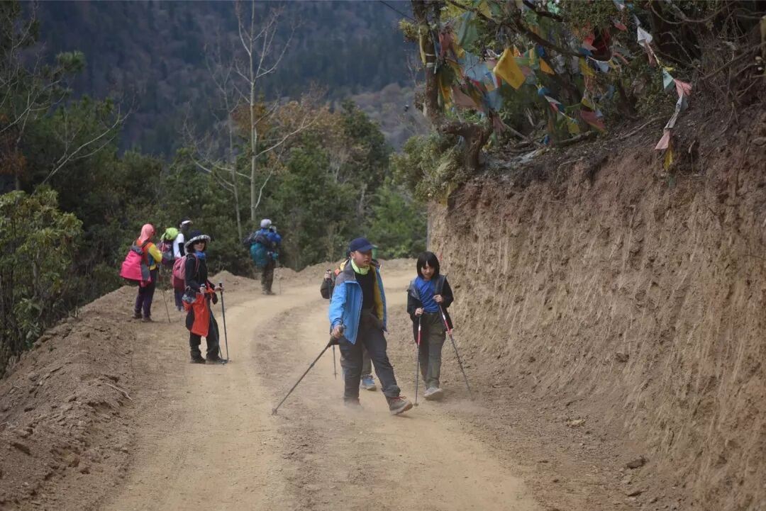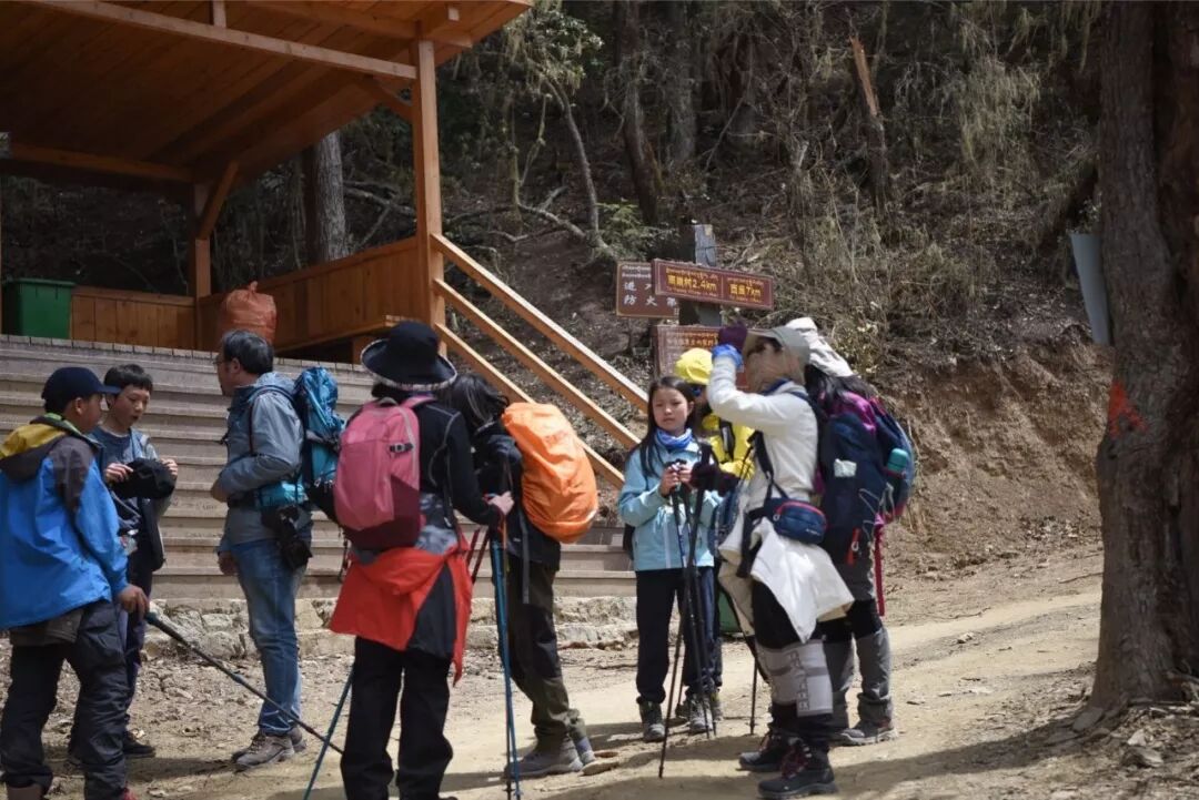 随后才知道存周母子俩上吐下泻了一整个晚上。存周发烧了。开弓没有回头箭,上车,继续赶路,赶向神圣的徒步点。是在一个垭口。只走了下坡路,因为上坡太辛苦了,我们的方案里选择了坐车上坡,徒步下坡。目标地点下雨崩村。