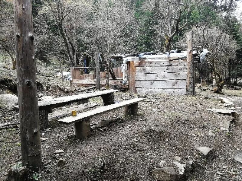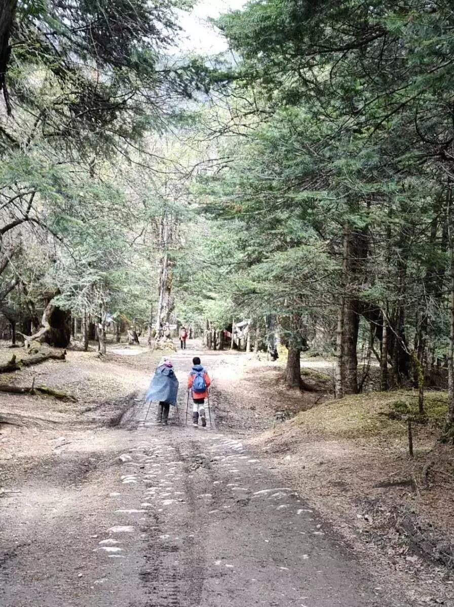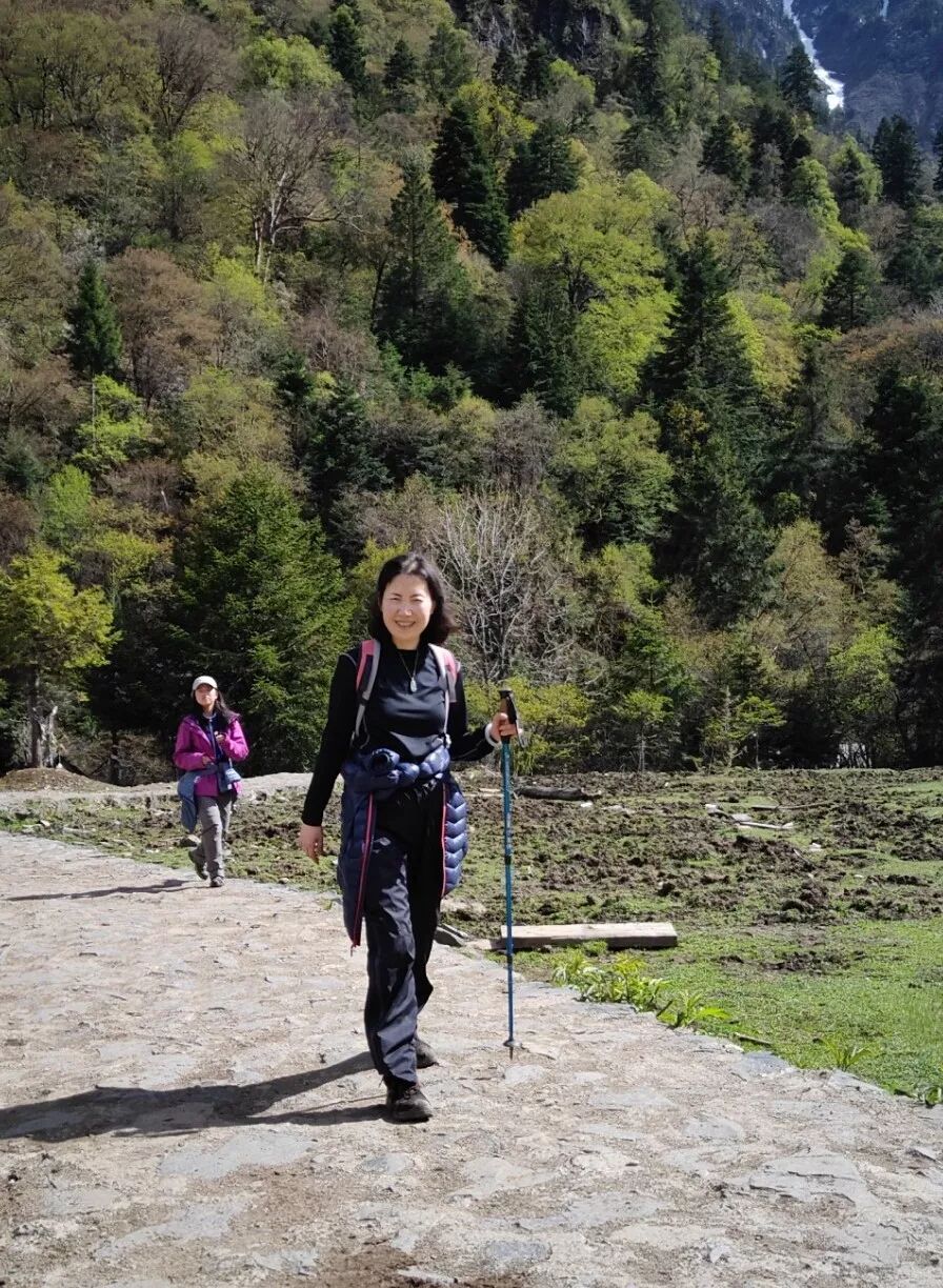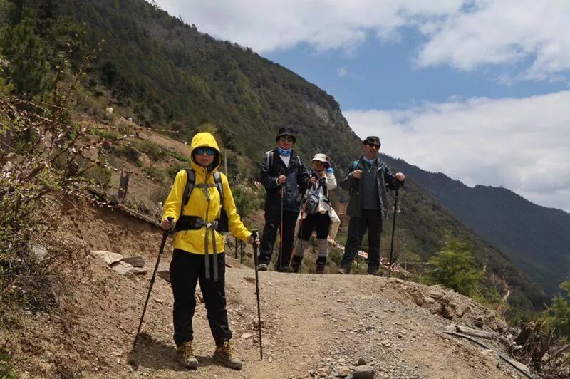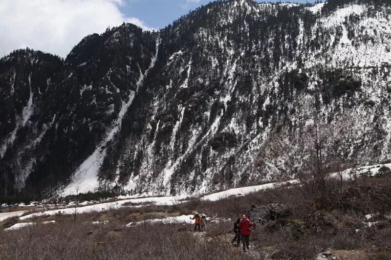 随后才知道存周母子俩上吐下泻了一整个晚上。存周发烧了。开弓没有回头箭,上车,继续赶路,赶向神圣的徒步点。是在一个垭口。只走了下坡路,因为上坡太辛苦了,我们的方案里选择了坐车上坡,徒步下坡。目标地点下雨崩村。