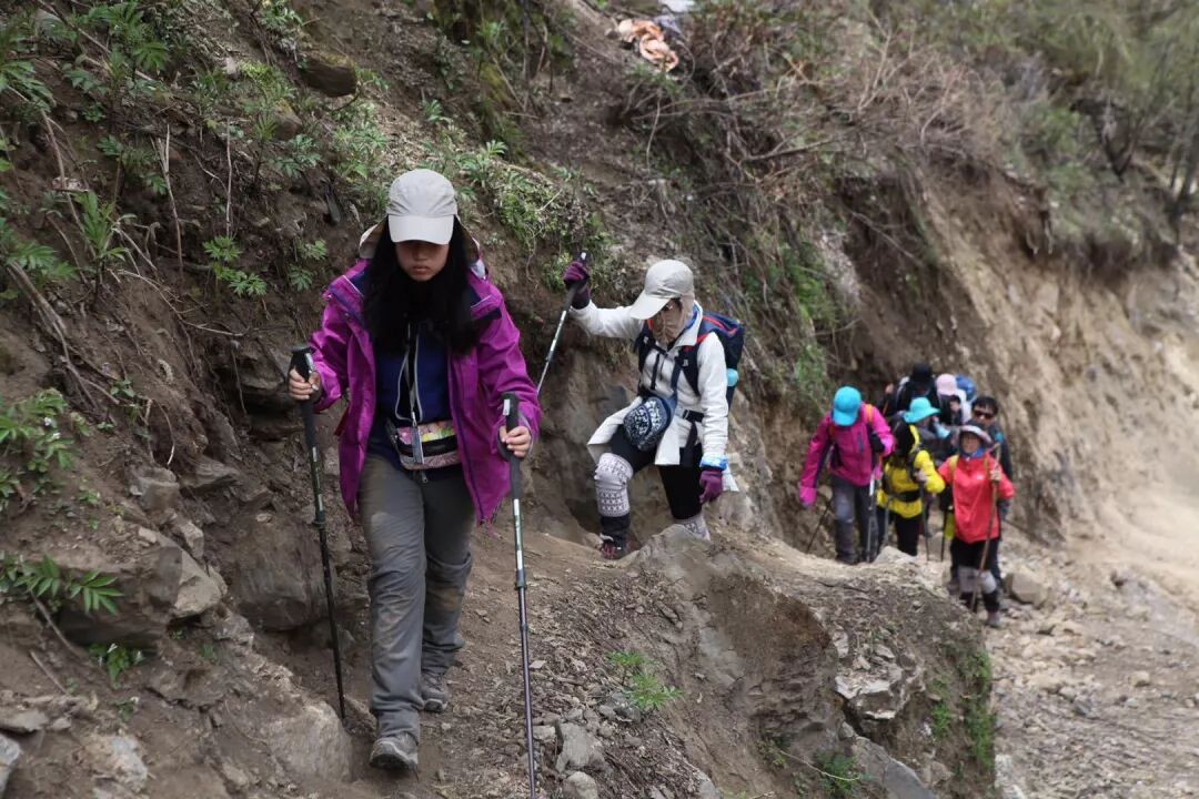 就这样,我们不知走了有多久,终于听到前面传来了好消息—时间已经到了下午1点,前面的路太难走,今天的爬山到此为止。、欧耶!终于可以下山喽!