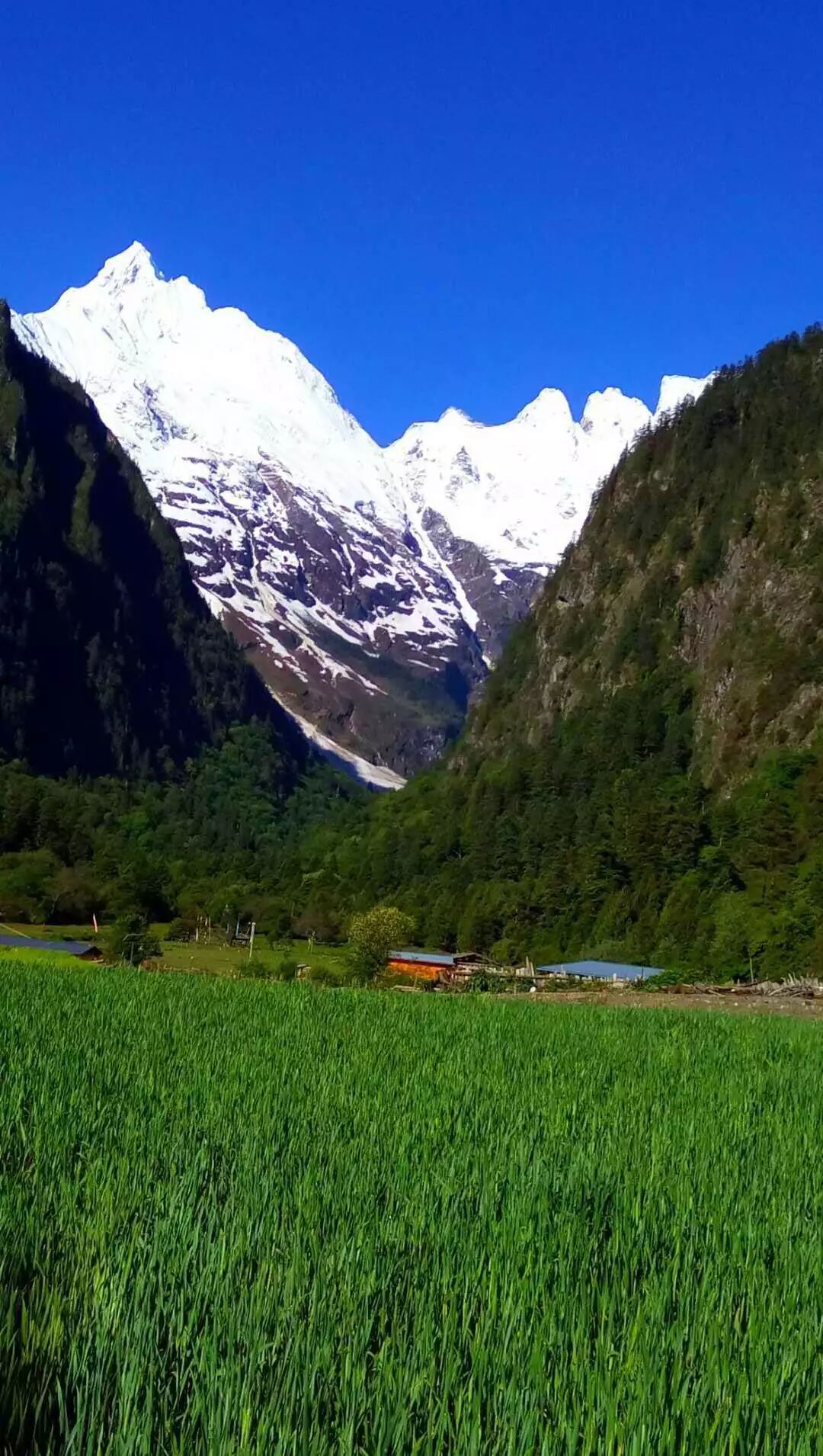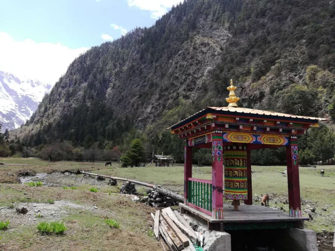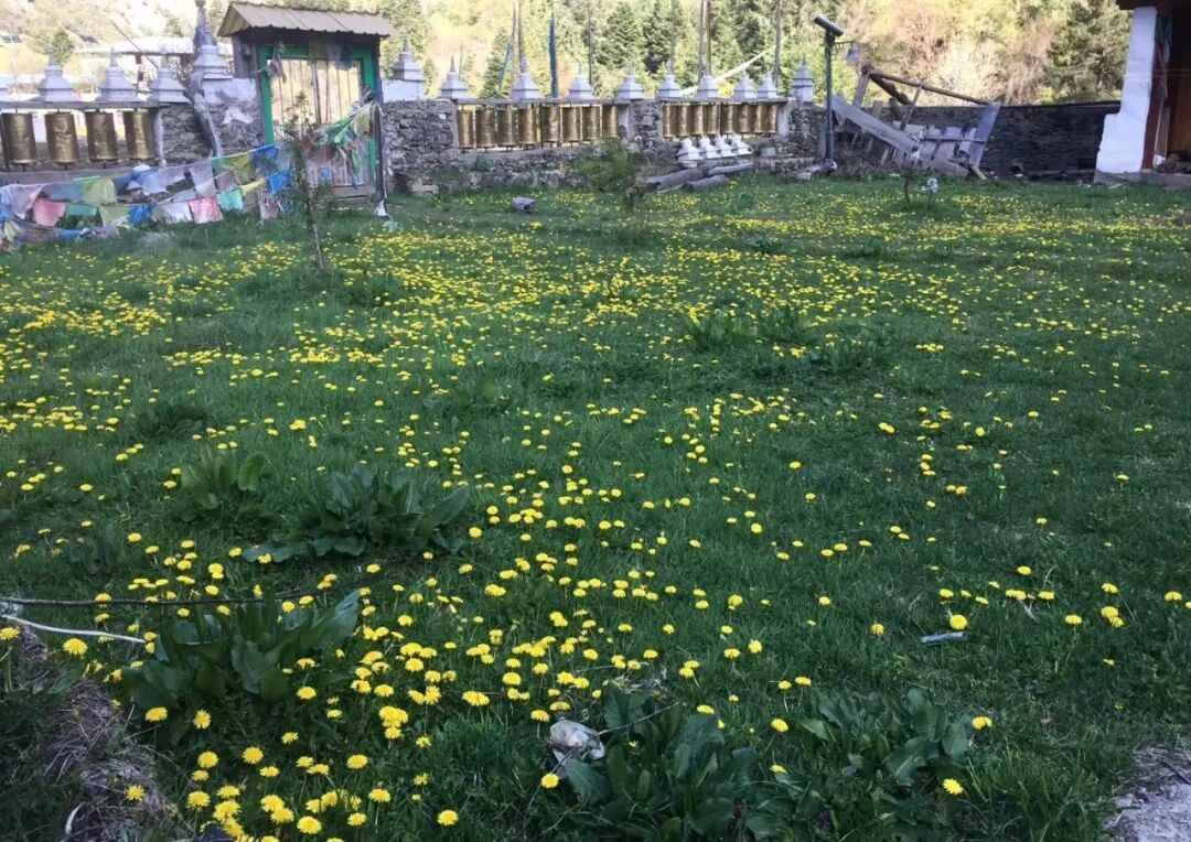 领队预计我们要走3/4个小时,结果我们两个多小时就到了。心中窃喜,看来领队的判断有很大的折扣空间。好事情。然鹅,事实证明,我的窃喜是个很大的误判。。。雨崩村风景不错,野花,溪水,田园,雪山,转经筒,家禽。
