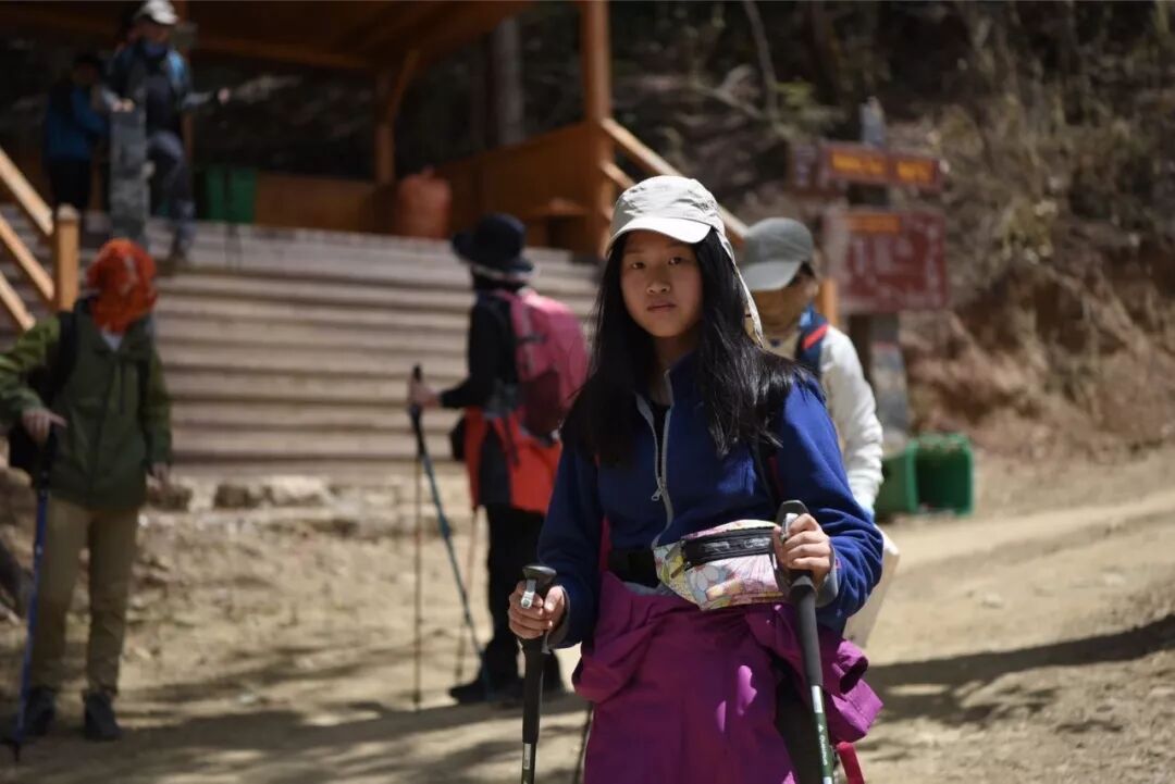 渐渐地,我们拉开了彼此的距离,也许是路越来越好走的原因。这当中,我也遇到了岔路口,也曾在心底暗暗埋怨高队不体贴我们这些小白。但也许是少了心念的纷扰,每到岔路口时应该走的那条路显得格外清晰。你的头脑和你的脚仿佛不加选择就知道应该走哪一条路。于是,一路唱着歌儿,我飞将下来,阳光明媚,微风轻拂。对了,还有那流水声越来越近、越来越大,看来村子已经不远了。