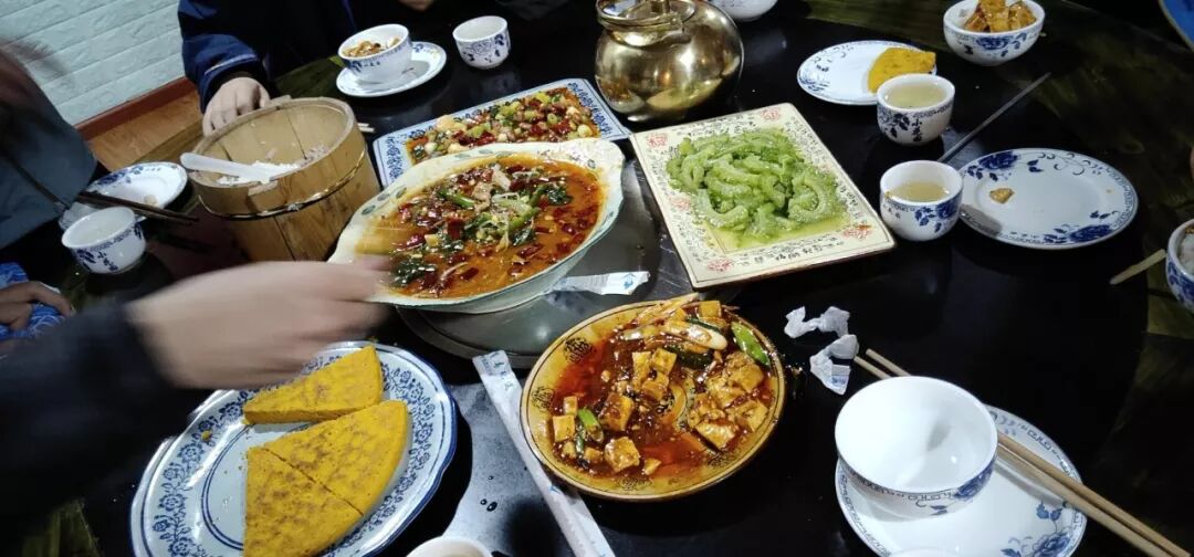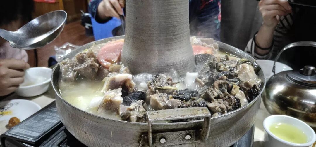 辗转一天,黄昏时终于抵达临时歇脚一夜的客栈。客栈门口东北人开的腊排骨火锅满足了所有人的胃。