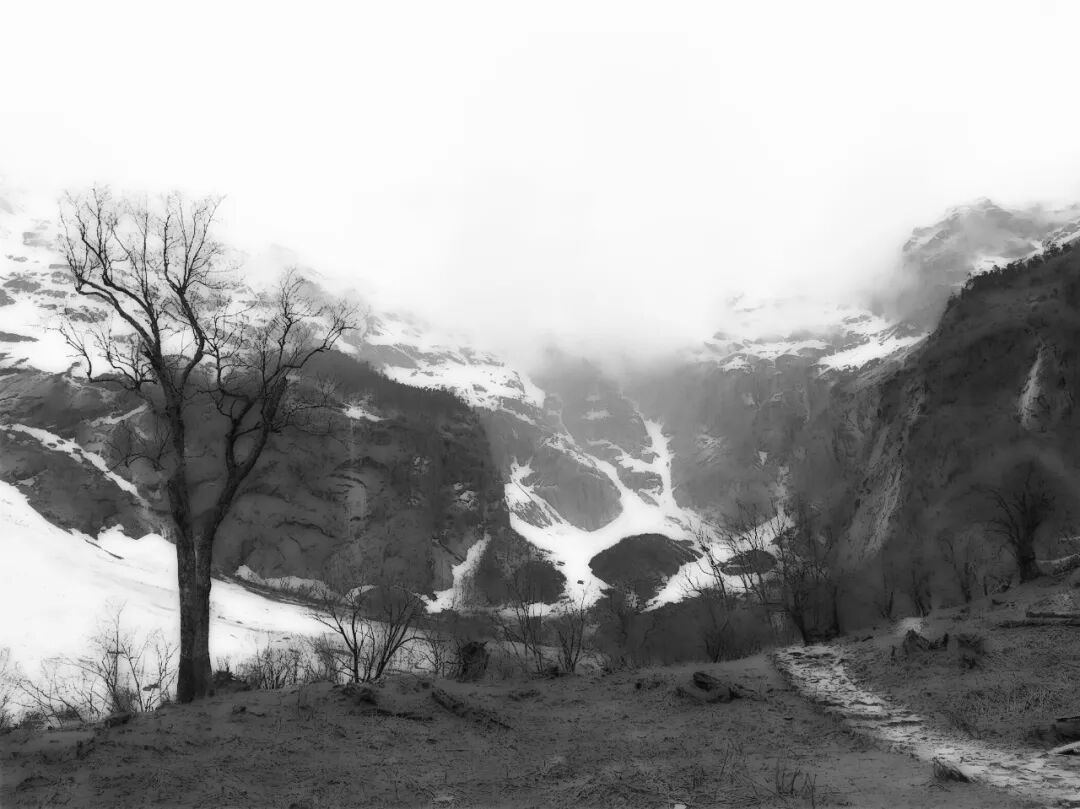 烟濛畴色清,炊散晨村鸡鸣,白塔迦幡经严寺,澈水微澜山影。牧牛路津行,铃 慢声去,溏澹若远,蹢步青草雾烟隐。至然傍溪忽路转,古参伫荫明,马伏低首芳萋牧,塘波漾动入漪。石冥青兮幽迥,水潺澴兮璇溟,长行复途叹嗟引,踱潇陟朅,邈域嵯崚,无尽崿峭巅惊。渐跋境深雪皑凝,静倚礓碣久皓,尘素御峰长银。鸾梦霏霏氲飞鹜,瀌素萦盈氛天临。然长覆兮终岁霭,盈冰纨兮寒莽凌。惚崚崩而崖碎,恍裂石而撼岭,雪冰繁鹜轰然巍峰而摧落,震袤隘峡声穹苍而存音。终安复途后村蜿而青掩,前绝峭而宏连。泉涓琮澈,径遐途迤,逐芷渐隐,余芜茫天。枯枝皓雪岩痕露,素覆横山苍茫间。萧萧落意褐峻际,长风萧索滚云离。旧栈倾裂木崩碎,层雪新覆故萋原。日照茫雪曜,杖艰路远,终登云石崚风兢。峣崇岩岠,宏浩苍然域影。幡卷风临,绕之神瀑,之圣泉净露落然石岩,贞曜洁莹,圣雪长凝而化,瀑落而滈然渊远。霄虹霭霓,砯泓激溟。灵贞永泫雪境,是路陟途留长于心。