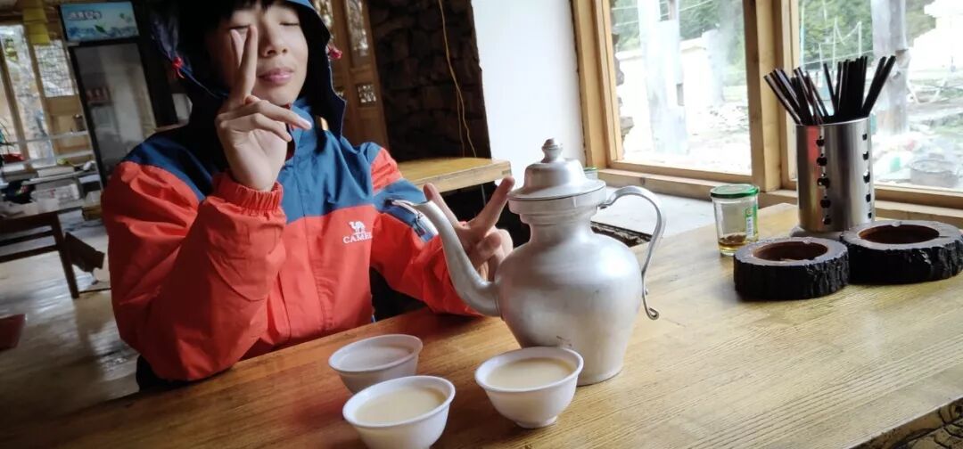 经过两日的长途跋涉,大家似乎都渴望能修整一天,在宁静中看日头东升西落。所以大家吃过早饭后,站在满是牛粪的小路上,迎面站着身材魁梧的高领队,脸上依旧阳光灿烂。