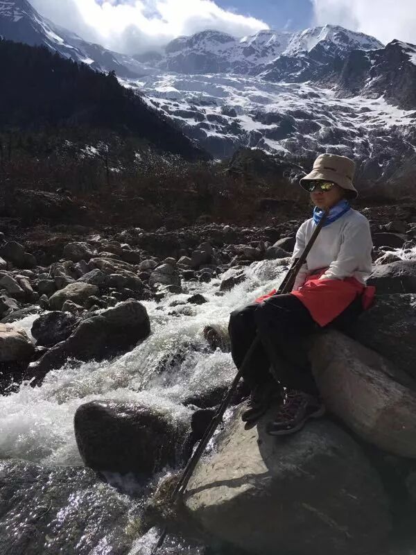 上山容易下山难,其实下山还好。领队带我们开了一个超爽的头,直接沿着雪坡溜下去。说爽,我一开始是紧张的,我对滑滑梯之类一向敬而远之。不得不滑时,我还是用尖叫打破了在冰湖不可以大声喧哗的禁忌。然后我突然发现,不用尖叫,没那么吓人,还有点好玩,不,是很好玩。刚觉得很好玩时,滑到底了,没过瘾,哈哈。然后开始了难忘的乱石路之旅。