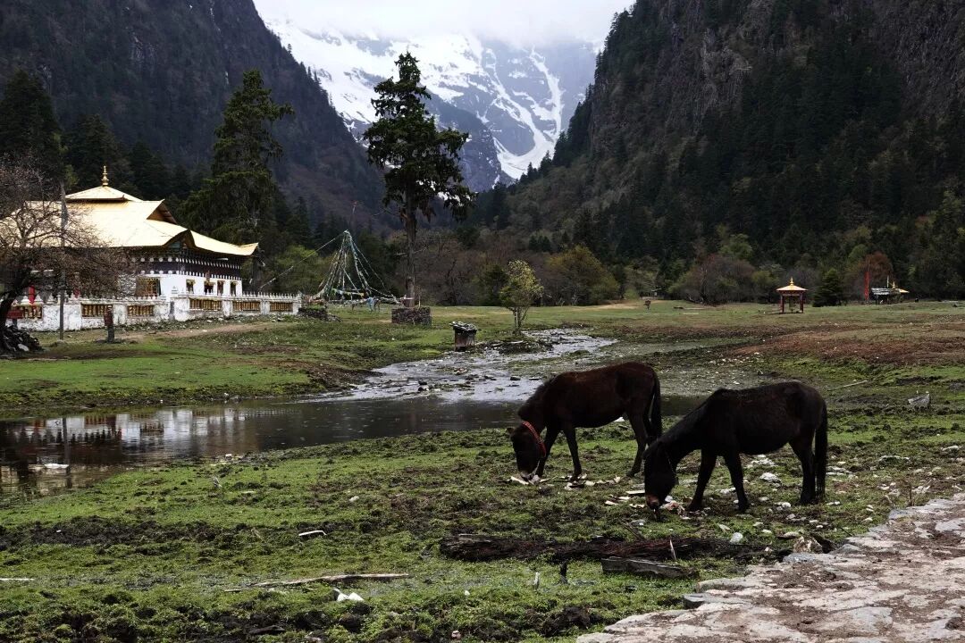 走出雪山,回到雨崩村,我完全忘了我们住下雨崩,所以当我站在上雨崩,突然意识到,接下来是把昨天从上雨崩走到下雨崩的路再来一遍,有点崩溃,也可以原谅,因为我胜利在望回客栈的梦想硬生生被延长了半小时多。