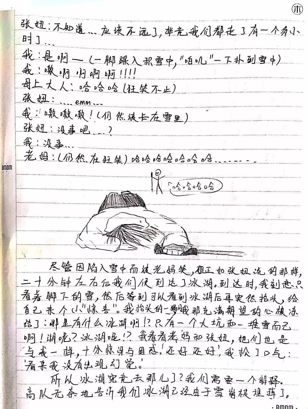 是的,开始时我并没有想去神湖。但不知为什么,神湖仿佛在遥遥地向我招手,让我走近她。抱着试一试的态度,我连忙赶到餐厅,一看见高队和布洛芬没走多远,就跑了上去。