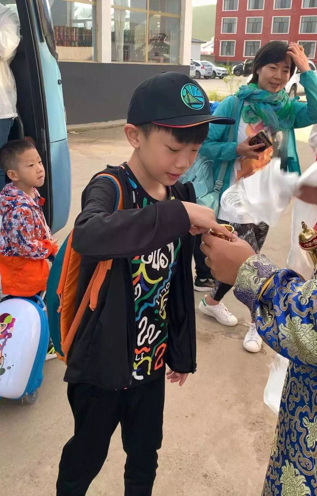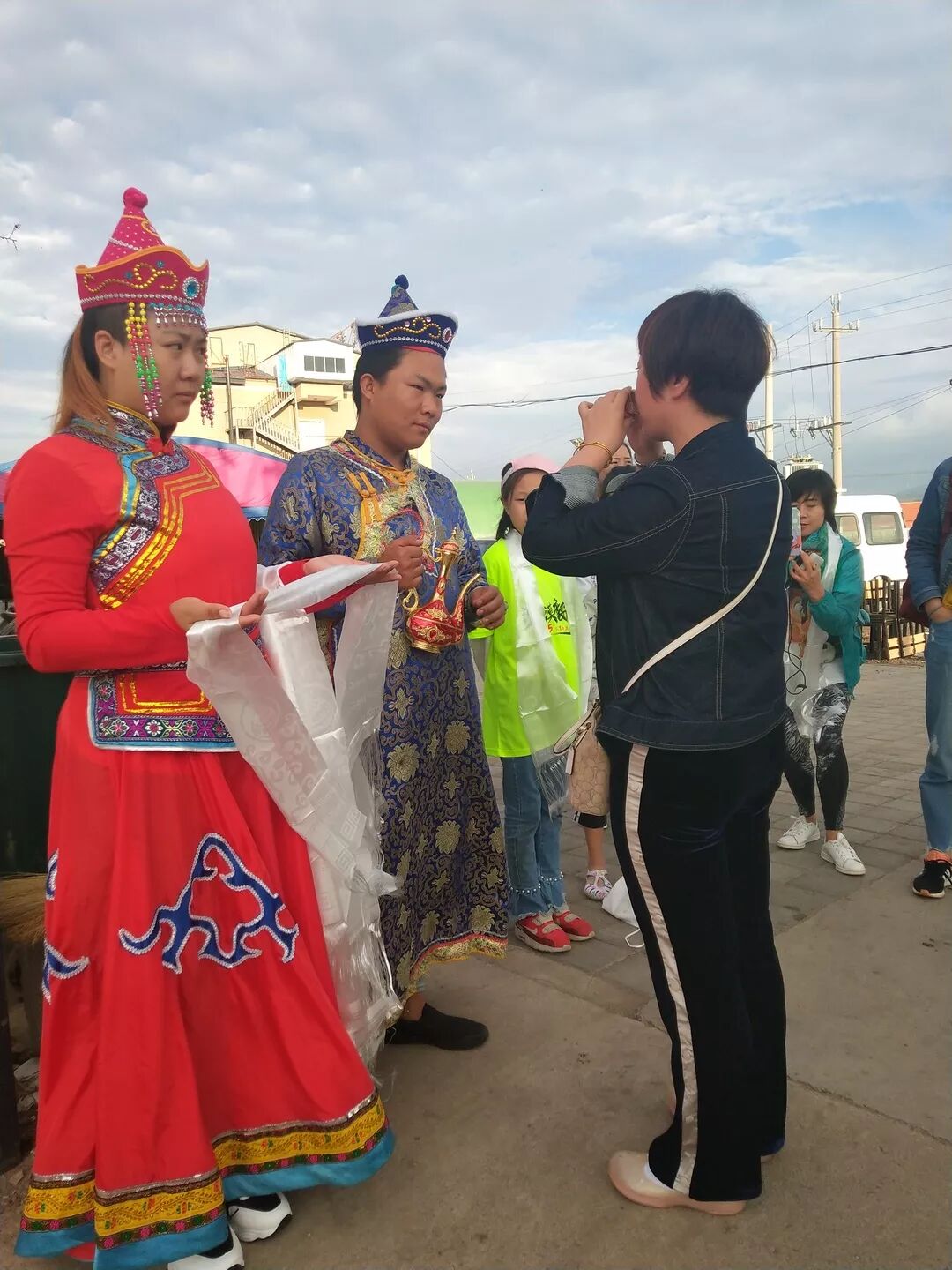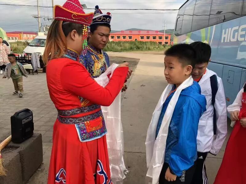 TIPS:献哈达是蒙古族人民对于来的贵客表发敬意的一种方式。我们下车后当地的蒙古族拿着哈达双手敬献,我们要双手接受,放在胳膊上,而不能将哈达放在脖子上。