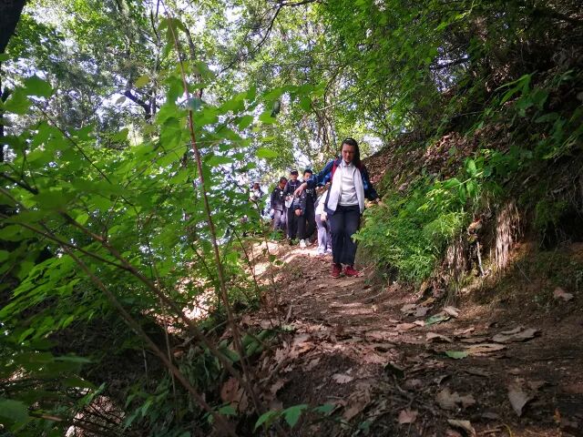 以小组为单位出发,在享受户外徒步的魅力同时,学习户外知识、增强户外生存技能,是本次活动的重点之一。出发时我们特意给每组准备了户外地图,指南针,并在途中的岔路口设立了5个学习点。