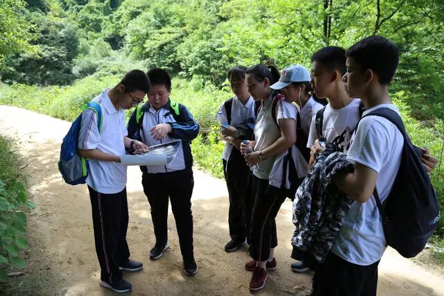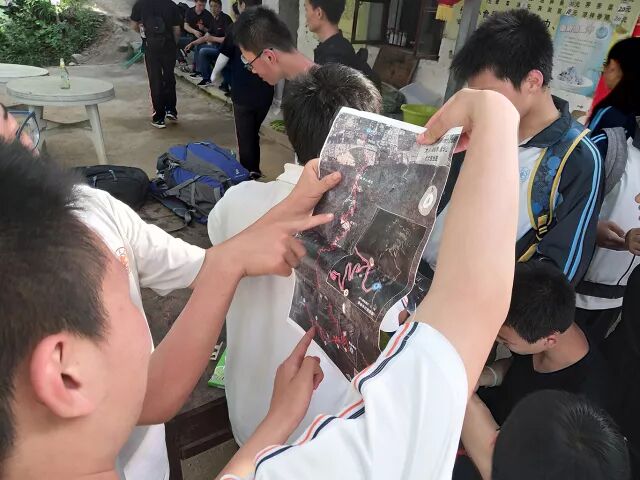 行程途中同学们需要根据学到的户外知识,利用指南针和地图判断自己的位置,并在设立的5个岔路口判断自己行进的方向。