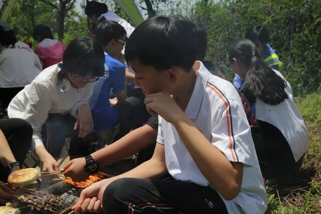 对于生活在城市里的同学们来说,或许吃过很多次烧烤,但是在山野里自己动手,绝对是不可多得的体验。